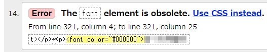 「fontタグは廃止されました。CSSを代わりに使ってください」というエラー。