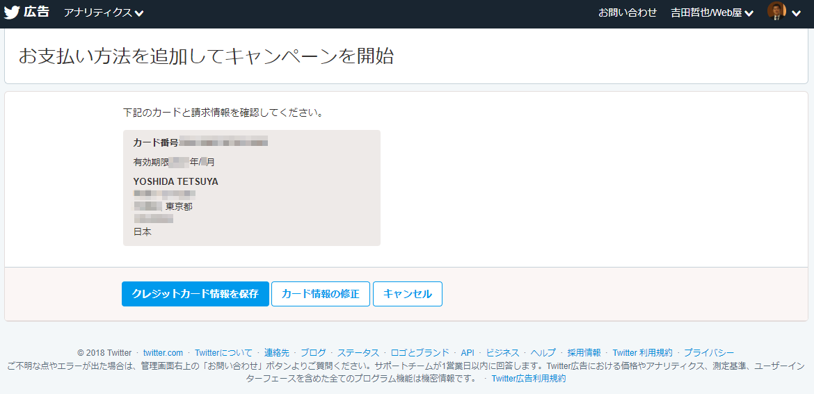 Twitter広告の場合、公式の機能として使えるメリットがある反面、クレジットカードを登録するなど、設定に少々手間がかかります。